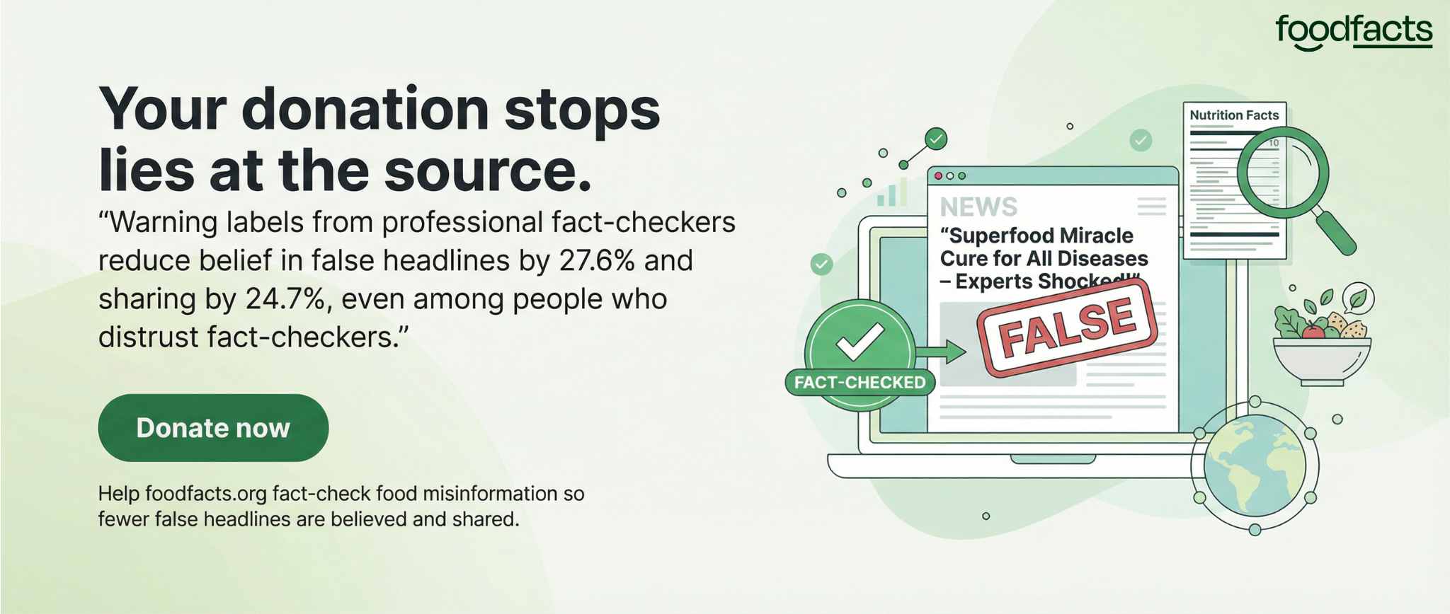 Misinformation is a growing threat to our health and planet. At foodfacts.org, we're dedicated to exposing the truth behind misleading food narratives. But we can't do it without your support.