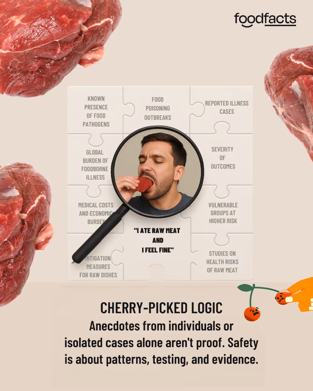 ❌ Claim: “There’s nothing wrong with eating raw meat.”